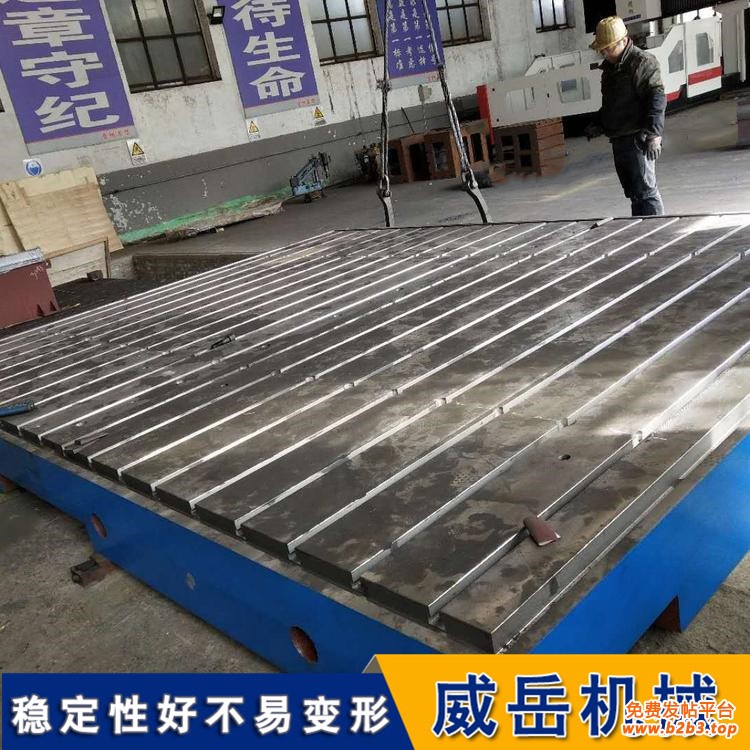 落地镗床工作台的材质为强度铸铁ht150-300,工作面硬度为hb170-350,经过两次人工处理(人工退火600度-700度和自然时效2-3年)对落地镗床工作台,落地铣床工作台进行热处理的目的是减少逐渐中的应力,除铸铁平板的部分白口组织,提高落地镗床工作台,落地铣床工作台工作表面的硬度和耐磨性,使该铸铁平台,铸铁平板的精度稳定,耐磨性能好。