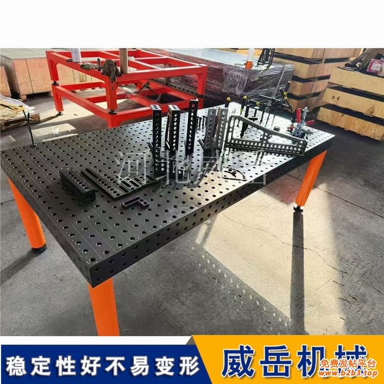 基准孔+定点芯轴技术:平台台面预设高精度基准孔(精度H7级),工件对应位置设计定点孔,焊接时只需将工件定点孔套入平台定点芯轴,即可实现自动找正,横向、纵向偏差≤±0.05mm。焊接挖掘机斗杆时,传统方式需调整3-5次才能控制错边量≤1.5mm,用平台直接套芯轴,错边量稳定≤0.8mm;