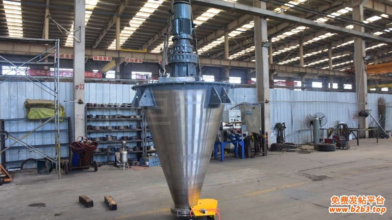 2.混合速度快,且质量均匀,本机双螺旋为非对称排列,一大一小扩大了搅拌范围,因而对比重悬殊混配比总殊的物科混合更为合适。