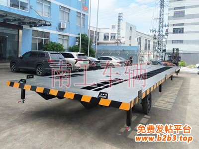 22吨预制方舱平板拖车 重型工业平板拖车南工车辆长期非标订制,平板拖车用于工业、仓库、物流中心、码头等场区内货物短途运输,也可配置方舱,房车,移动商店等房屋机构牵引移动,短途周转运输。