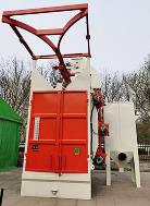 4.若以上各步骤没有发现问题,则打开提升机和螺旋输送器,从清理室大门处向设备中加入约600Kg的新弹丸。这些弹丸经螺旋输送器的输送和提升机的提升,贮存在分离器下部的料斗内。开车后,这些弹丸将通过料斗下部的电动供丸闸阀流入吊钩通过式抛丸机,对清理室内的待清理工件进行抛丸清理。