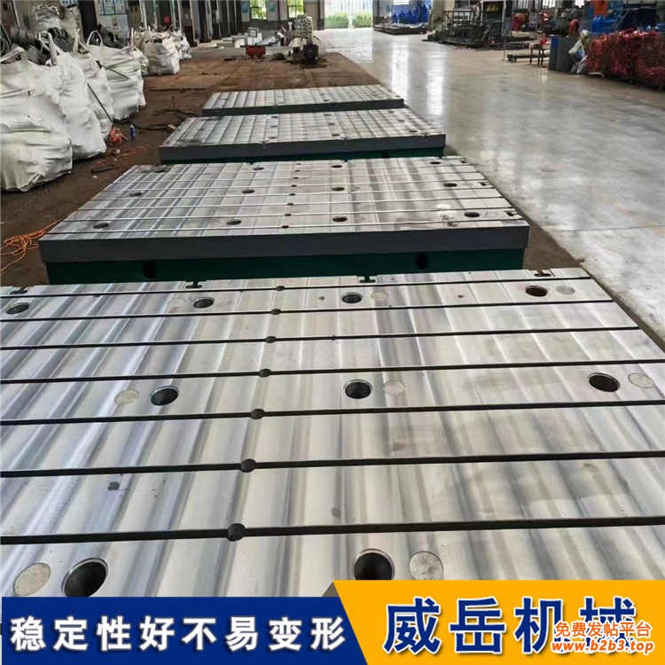 T型槽铸铁平台就是在铸铁平台的工作面上加工出T型槽。这些T型槽的作用是配合螺栓和螺杆来固定工件,方便焊接和装配等工作。T型槽的尺寸要根据使用的螺栓尺寸来确定,常见的尺寸在机械部标准里有详细的说明。