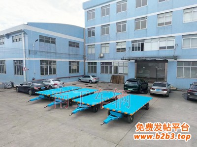 6吨平板拖车蓝色 带减震带刹车工具拖车南工车辆长期非标订制,拖车常用于小家电、家具、印刷品等轻工行业使用,时速没要求时一般采用实心轮胎,耐用、免维护。