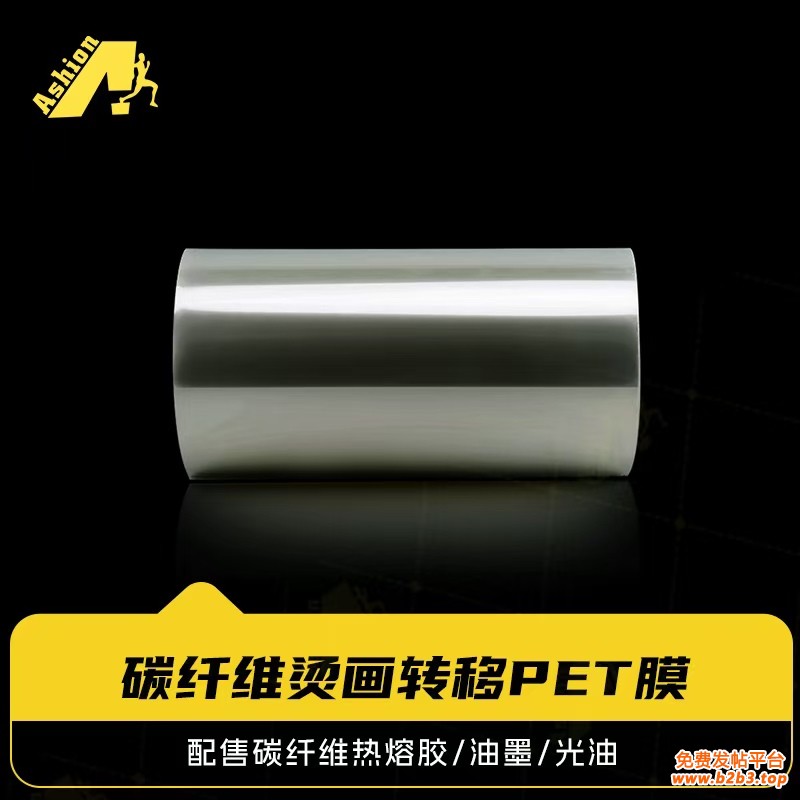 工艺:1先在碳纤离型膜上印光油,2再印碳纤维转印系列油墨,3再印碳纤维热熔胶,4滚烫至碳纤维表面,5撕掉离型PET即可