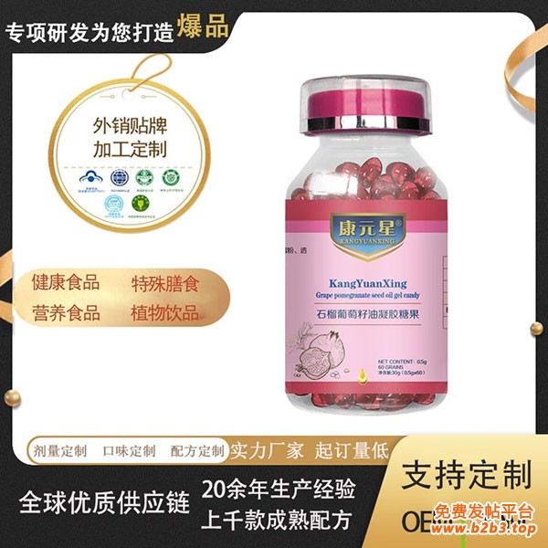 石榴葡萄籽油凝胶糖果 天然抗氧化力 软胶囊便携护颜
