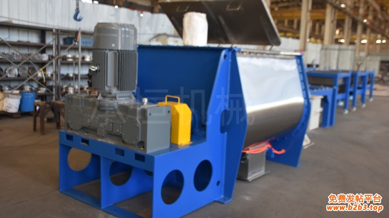 螺带混合机对于粘性,或有凝聚性的粉粒体的混合,以及粉粒体中添加液体及糊状物料的混合有良好的效果,筒盖可做成全开式门,以便于对设备进行清洗更换产品。
