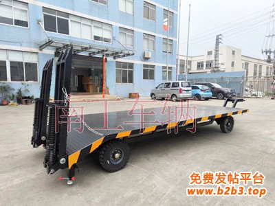 6吨带爬梯移动平板拖车南工车辆长期非标订制,平板拖车是一种用于工厂车间、物流园区、港口码头运输的牵引车辆。属于非标准车辆,载重量大、外形尺寸可根据客户的需求定制。底盘低,装卸货物方便,承载能力大,使用寿命长等优点。一般使用在机械、冶金、仓储运输等多个行业。短途中转、移库、机械、物流、下线等作业运输。适合于工业运输装卸等。本款拖车用于挖机,铲车,吊机等装卸运输,带爬梯方面上下平板。