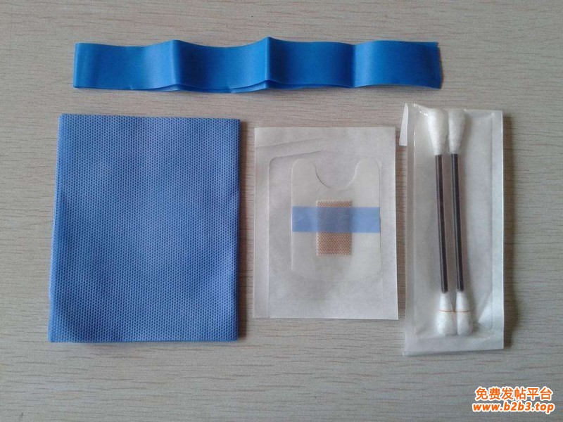 【主要结构及性能】: 一次性使用采血创伤护理包由基本配置:治疗巾、碘伏棉签、输液贴、止血带、棉球、医用棉签、包布、托盘,选用配置:酒精棉签、刷子、薄膜检查手套、塑料镊子、医用橡胶检查手套组成。