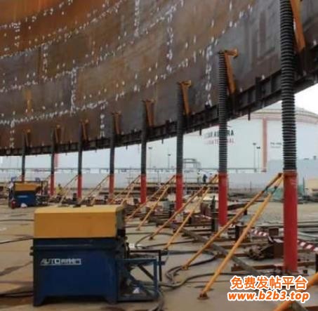 (2)安装。按确定位置,将立柱固定在底板上,应接触且应垂直,用J507焊条焊牢。
