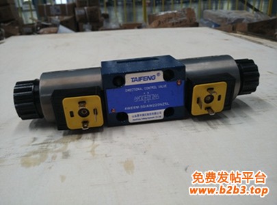 山东泰丰智能控制股份有限公司(原山东泰丰液压股份有限公司)生产的4we6型电磁换向阀是用电磁铁直接推动阀芯移位工作的小型方向控制阀,主要用于控制液体的通断和流动方向,也可以作为先导控制阀,以控制各种大通径的液压阀(电液换向阀或二通插装阀),实现对大功率液压阀的先导控制。其特点是:1.以直动式电磁铁操作方向滑阀作为标准类型;2.安装面符合DIN24340A型ISO4401和CETOP-RP121H;3.带可拆卸线圈的湿式直流获交流电磁铁;4.电磁铁可旋转90度;5.可以迅速而方便的更换电磁铁线圈而不引起液压系统漏油;6.可选的手动应急操作