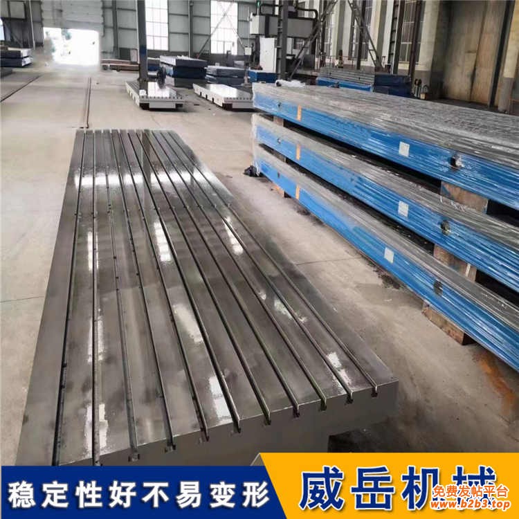 T型槽铸铁平台能承受的大重量并非一个固定数值,而是受多种因素综合影响。从技术原理上讲,T型槽铸铁平台的承载能力通常以单位面积承受的重量来衡量。如一个尺寸为3米宽和5米长的T型槽铸铁平台,若放置了重量为90吨的工件,其单位面积承载能力可通过计算得出:90吨÷(3米×5米)=6吨/平方米,即该平台每平方米面积可承受6吨重量。