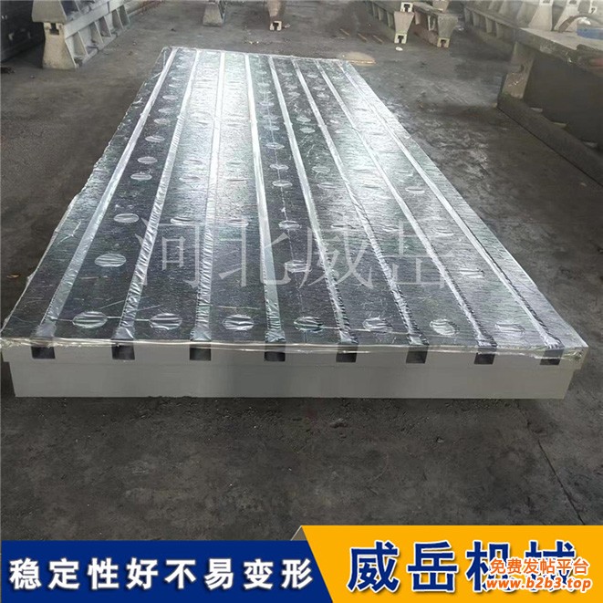 划线平台按照结构可以分为筋板式和箱体式,外观上大多是箱体式设计。工作面有长方形、正方形或圆形,采用刮研工艺,可以在工作面上加工出V形、T形、U形槽、燕尾槽、圆孔、长孔等多种形状。划线平板不仅可以用作机械零件平面度、平行度、直线度等形位公差的测量基准,还适用于工件、设备检测、划线、装配、焊接、组装、铆焊的平面基准量具。