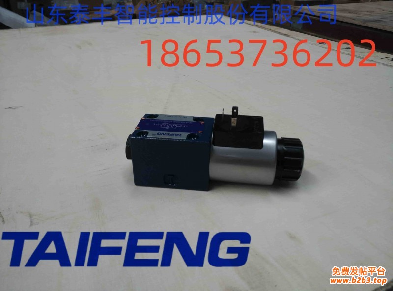 山东泰丰智能控制股份有限公司(原山东泰丰液压股份有限公司)生产的4we6型电磁换向阀是用电磁铁直接推动阀芯移位工作的小型方向控制阀,主要用于控制液体的通断和流动方向,也可以作为先导控制阀,以控制各种大通径的液压阀(电液换向阀或二通插装阀),实现对大功率液压阀的先导控制。其特点是:1.以直动式电磁铁操作方向滑阀作为标准类型;2.安装面符合DIN24340A型ISO4401和CETOP-RP121H;3.带可拆卸线圈的湿式直流获交流电磁铁;4.电磁铁可旋转90度;5.可以迅速而方便的更换电磁铁线圈而不引起液压系统漏油;6.可选的手动应急操作